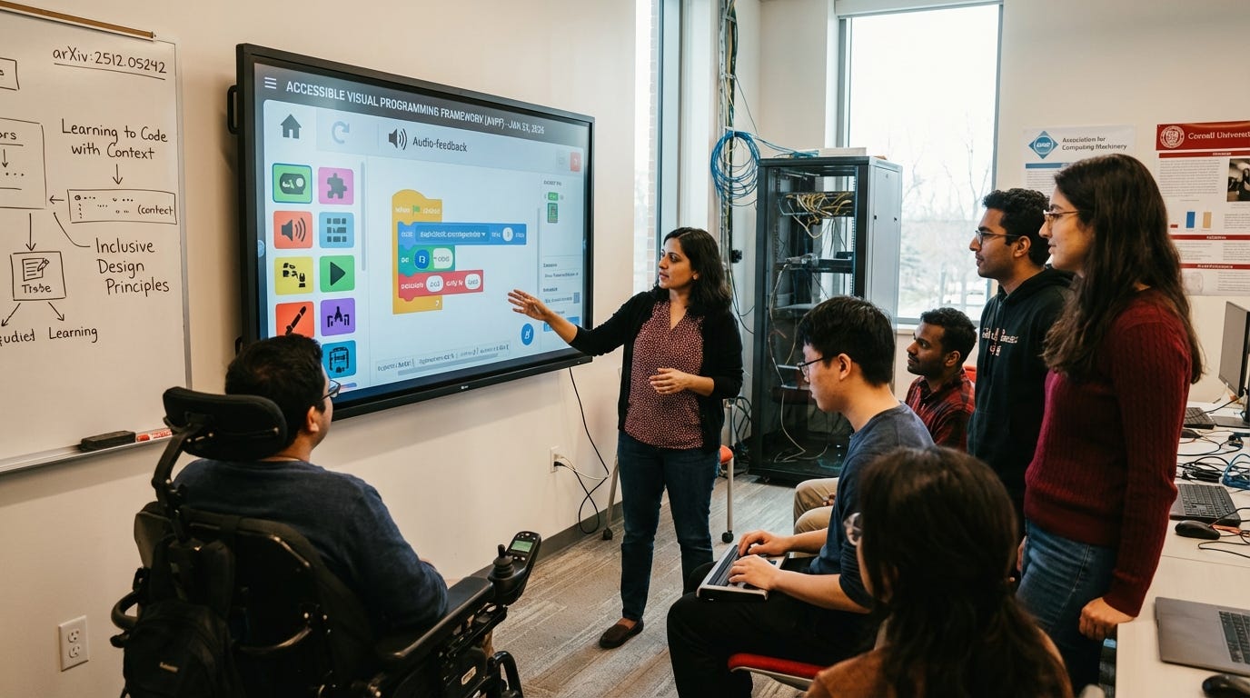 Researchers released a new extension-based framework designed to make Blockly—a popular visual programming environment used in education—accessible to blind and low-vision users. The system enables screen readers to navigate and manipulate code blocks effectively, addressing a longstanding barrier in STEM education.