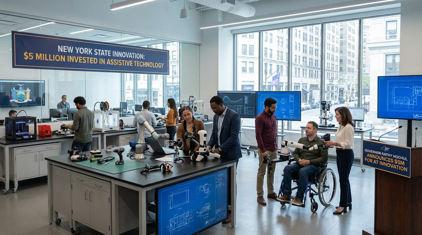 Governor Kathy Hochul’s FY2027 Executive Budget Proposal includes $5 million to establish an “Assistive Technology Innovation Center.” The funding is explicitly targeted at bridging the gap between academic research and the commercial market for independent living hardware. The proposal also includes a grant program for adaptive clothing.